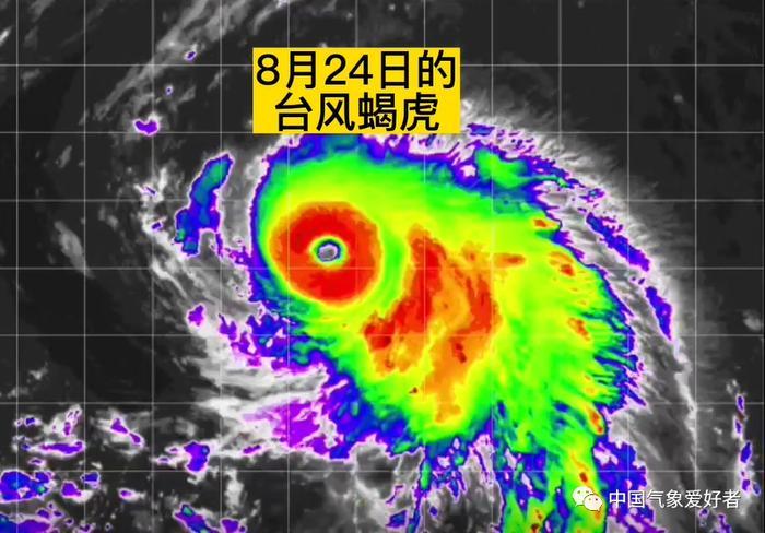 但是,意外往往在不经意间发生。8月23日下午起,马鞍和蝎虎的加强就超出预期;而8月24日上午,已经来到北纬34度的蝎虎,忽然睁开台风眼,核心云团变得圆滚滚--这是台风迅猛加强的特征。中央气象台立即给了强台风的评价,较之前的热带风暴可谓连跳三级。