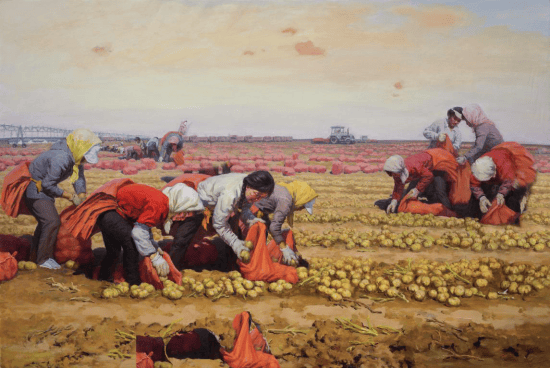江浩老师讲到:“大自然中面对场景和人物写生是我最愉悦的事情,我从小在农村长大,对农村乡间有份感情,我想表现农民及现代生活把中华民族文化精神和创新,文化特征和内在信息通过人物的创作体现得更厚重一些……”