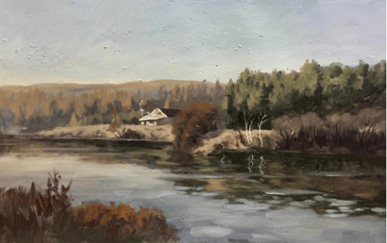 江浩老师怀着对家乡情感,怀有对家乡景物的视觉感受力,造型能力和表达能力。他讲道:“其实色彩的学问比造型的学问大得多,过去有种说法叫做‘素描靠理解,色彩靠感觉’”。这话只说对了一部分,真正高水准的色彩表现也需要理性去引领,形成理性笼罩之下的色彩感受,只有这样的色彩感受力才具有稳定性。色彩在我看来是油画最为本质的东西,是最具魅力的,是唯一不可被其它画种替代的内容,缺乏色彩表现力的油画其价值要大打折扣或根本称不上是油画。