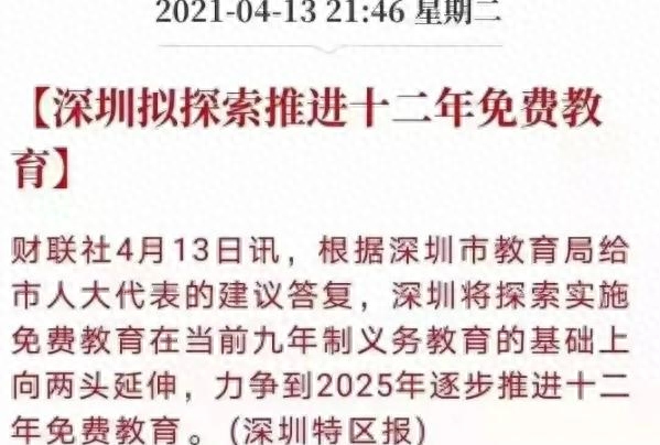 但我国个别地区,已经开始摸索试行12年义务教育,比如深圳,目前正在探索实施将9年义务教育向两头延伸,争取在2025年推进12年免费教育。总而言之,短期之内该政策是很难实现的,但不排除将来有实现的可能。