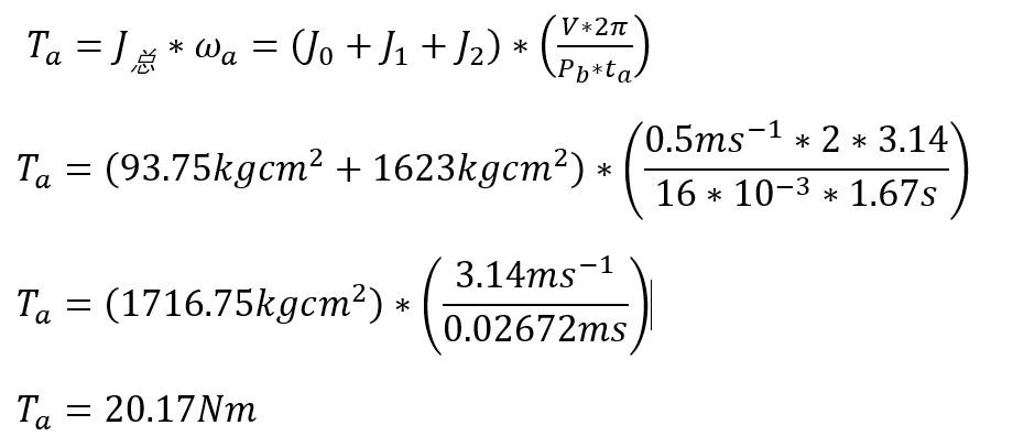 注:mb-丝杠质量,Db-丝杠公称直径,mo-联轴器质量,Do-联轴器外径,m-负载质量,Pb-滚珠丝杠导程,v-负载运动速度,ta-负载加速时间