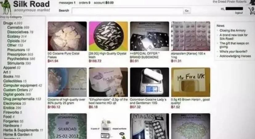 其实,暗网上面确实有很多的毒品交易网站,以及枪支贩卖,而且确实够隐蔽,基本上普通互联网上搜索不到的暗网上也确实可以搜得到。在比特币被发明之后,也基本都是用比特币在交易。之前就有个暗网上面最大的交易网站——丝绸之路(Silk Road),在上面基本上所有你能想象到的跟犯罪相关的它都有,想像不到的也有,但是像我们日常用的东西上面也有,比如苹果手机,苹果电脑之类的,而且价格也很便宜,但是你付款了万一人家不给你发货呢?也没地方说理去。但是丝绸之路已经不复存在了,因为其创始人某次在图书馆蹭网的时候被抓了………自然而然的这个网站也就倒闭了。