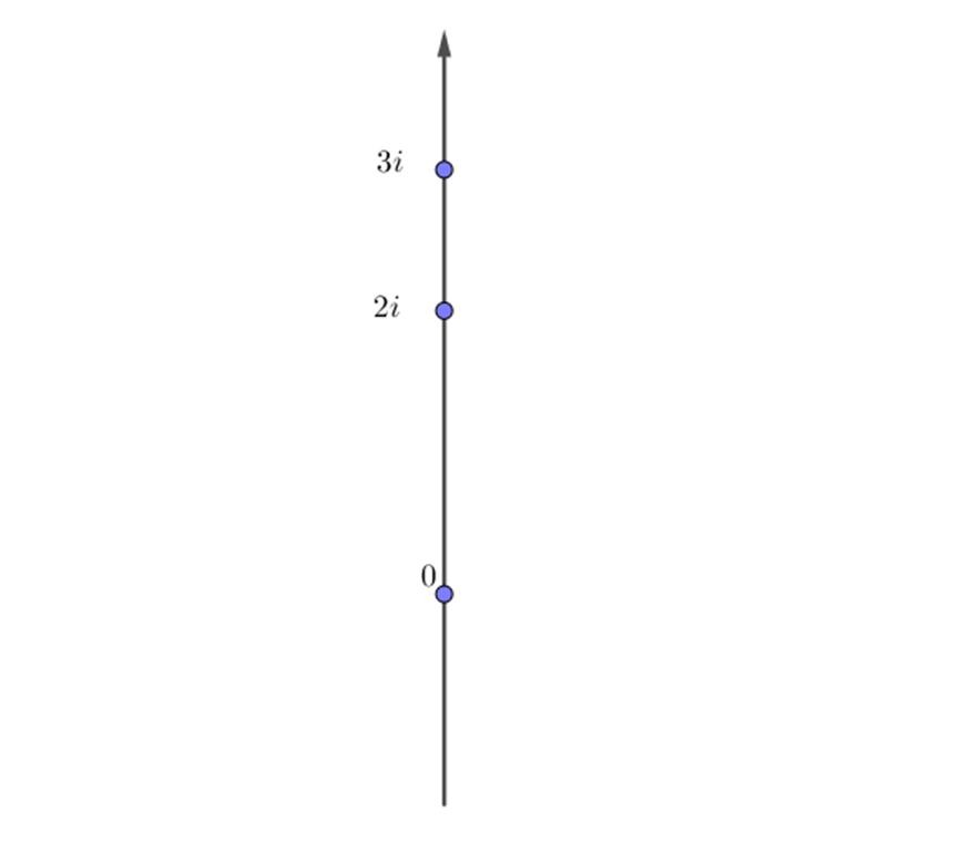 按照实数可以在实数轴上找到准确位置的这种思维,虚数也应该能在虚数轴上找到它们的位置,如图中2i、3i等: