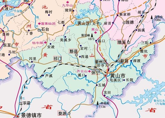 现代的黄山市(网上地图修改)