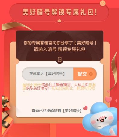 进入活动,在美好暗号输入框中输入争取的暗号即可领取奖励。