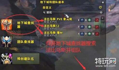 3、打开地下城查找地搜索法比乌斯队伍,组队跨位面;