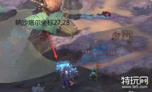 1、前往图示纳沙塔尔坐标(27,28)位置;