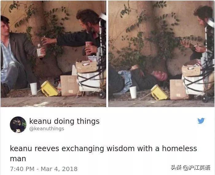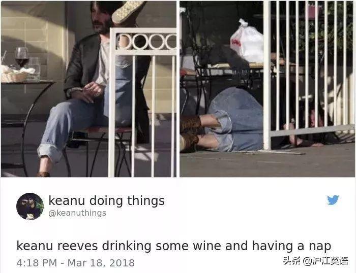一个叫做Keanu Doing Things的推特博主,还记录下了基努的各种日常,莫名戳中萌点。↓