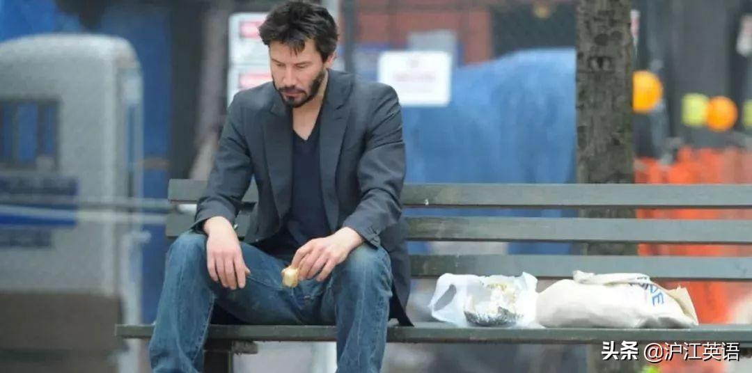 他一个人坐在长椅上吃东西的照片更是被制成了各种表情包--“悲伤的基努”。↓