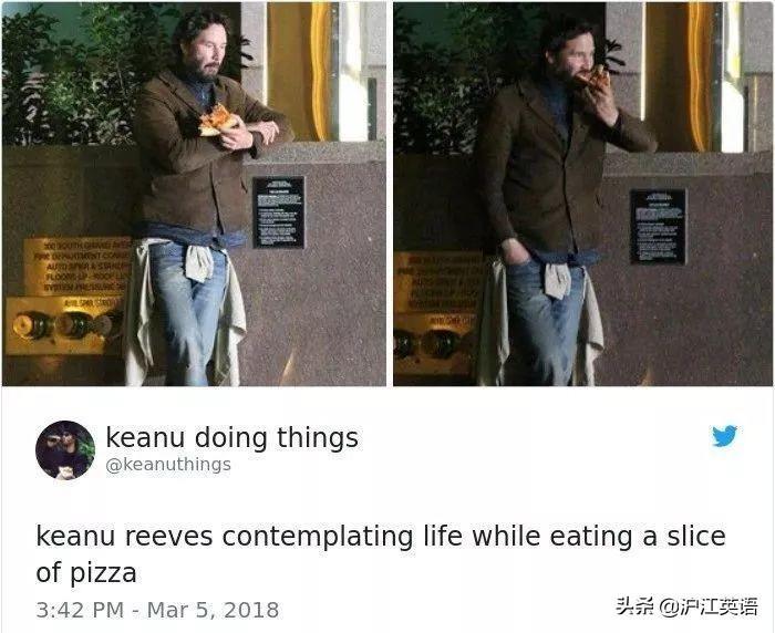基努·里维斯一边吃披萨,一边思考人生