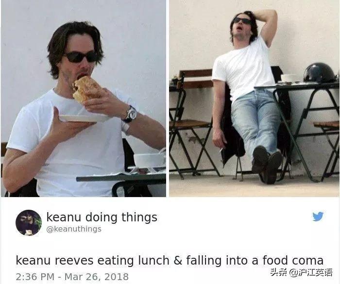 基努·里维斯吃完午饭,昏昏欲睡