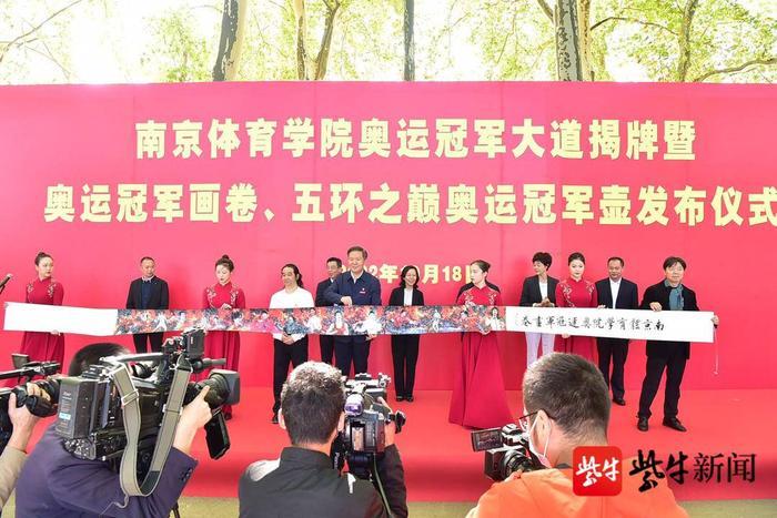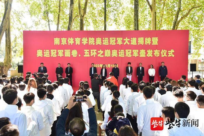 扬子晚报网讯 10月18日,南京体育学院在灵谷寺校区隆重举行奥运冠军大道揭牌暨奥运冠军画卷、五环之巅奥运冠军壶发布仪式,葛菲、黄旭、陈玘、陆春龙、骆晓娟五名奥运冠军现场助阵。
