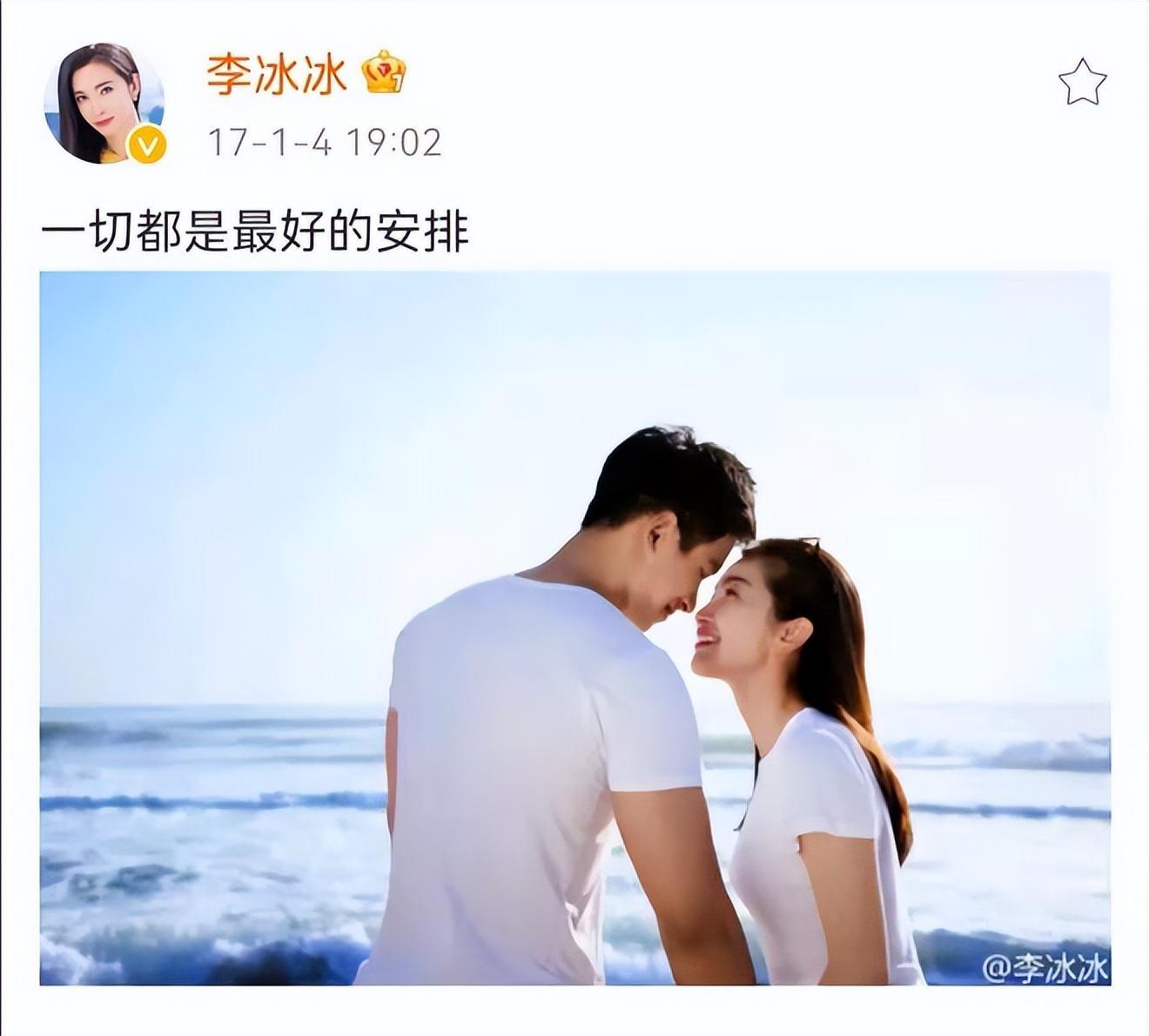 2017年李冰冰在自己的社交软件上公开承认恋情“一切都是最好的安排”。