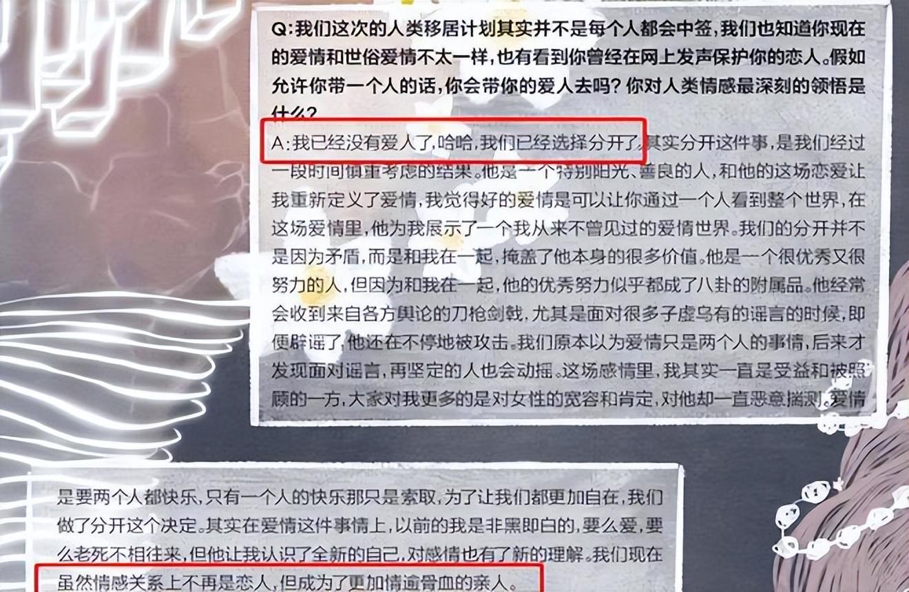 “我们已经选择分开了,虽然情感关系上不再是恋人,但是成为了更加情逾骨血的亲人。”