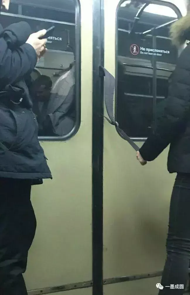 上地铁的时候,人上来了,但是包包却被忘在了外面,只能一路牵着了!