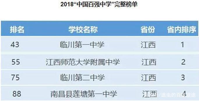抚州市临川第一中学,的确是一所牛校。看一下2018年由中国名校长论坛推出的中学百强榜,江西省有4所学校上榜,其中临川第一中学排名全国第43位,江西省第1位。临川第一中学是江西省最知名的高中之一。2002年,临川一中与临川二中,抚州一中组成临川教育集团。