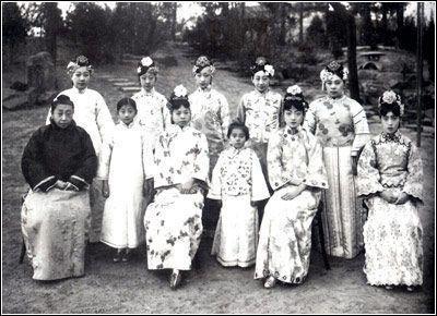 婉容是图中右边数过来第二个坐着的女子,是不是艳压群芳啊。