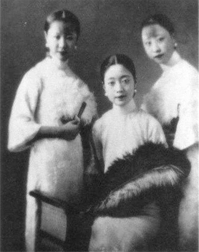 婉容(中间坐者)和溥仪两位妹妹(二格格金韫和三格格金蕊秀)的留影,婉容端庄娴静,,两位格格也是十分标致。