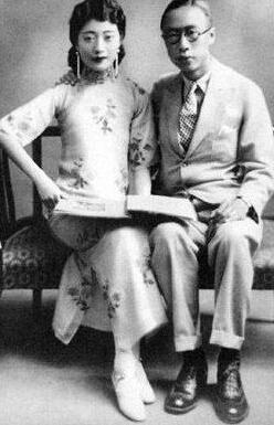 婉容身着旗袍溥仪身穿西装,溥仪的手搭在婉容的肩膀上,婉容却表现的端庄大方,显得溥仪有些拘束。