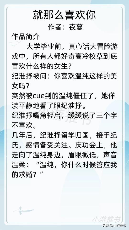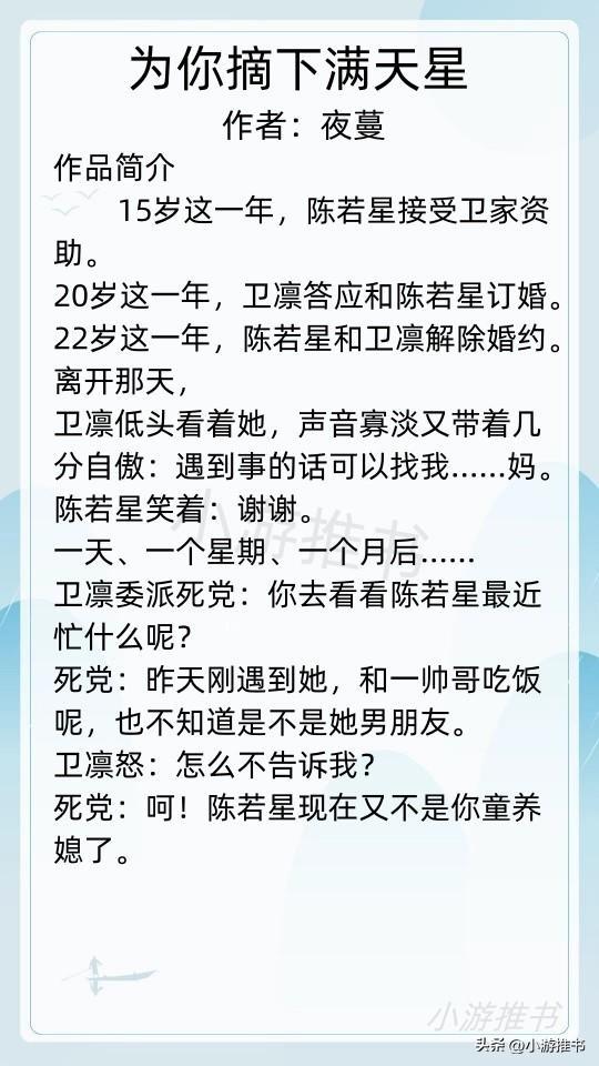 盘点13本作者夜蔓的高质量现言小说《为你摘下满天星》《执念》