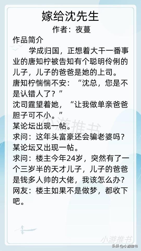 10.《嫁给沈先生》 作者:夜蔓 //字数:26w