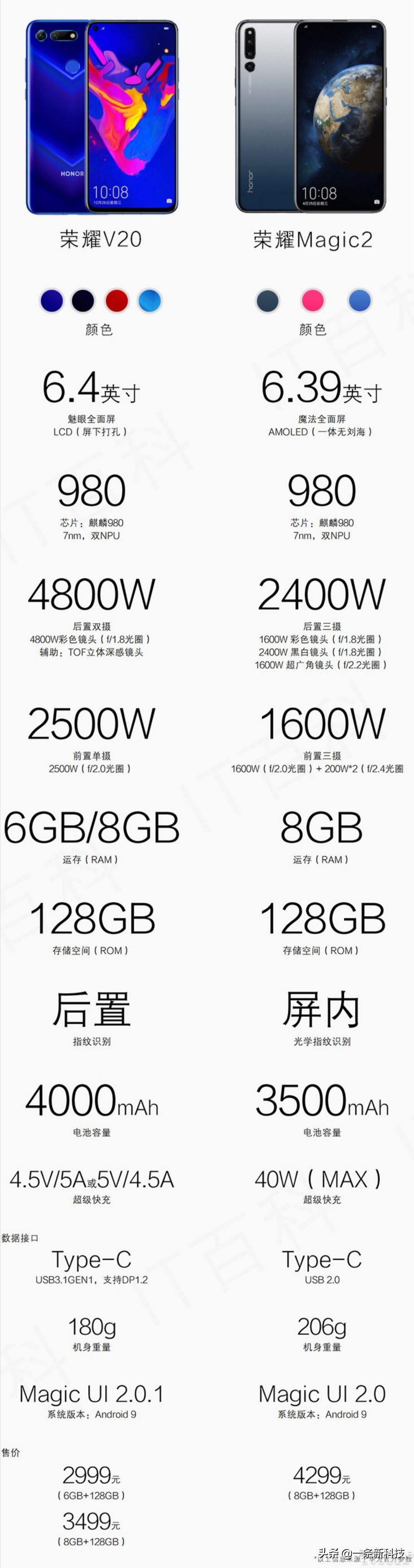 荣耀V20与荣耀Magic 2综合对比,选谁一目了然