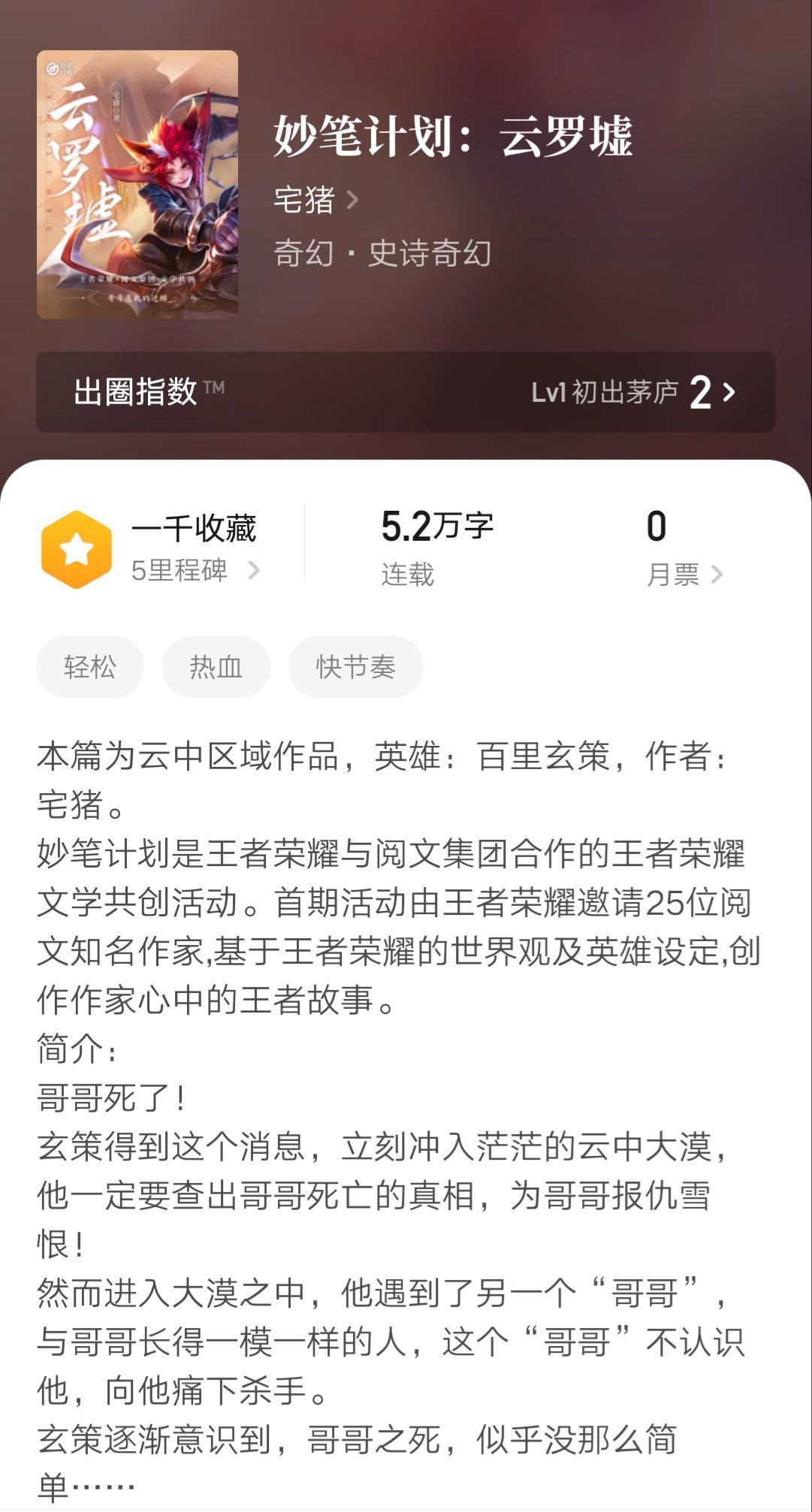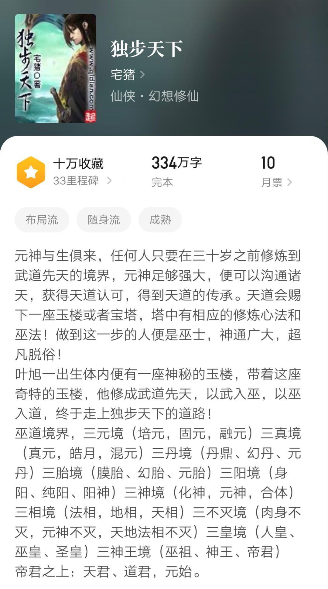开头很惊艳,后面就慢慢展开世界观和修炼体系,一如既往的宅猪风格,瑰丽玄奇的修炼路,神秘浪漫的旅途,可可爱爱的配角,半遮半掩的主角身世,阅读感流畅又愉快!