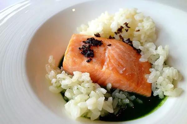 上了一道芝士土豆片之后,我又问侍者点了一份午市菜单之外的樱鳟。这是一种产于晚春时节的食材。樱鳟从肉质上尝起来像是国内食客常吃的鲑鱼,但体积比产于秋季的鲑鱼小。两者分别暗喻春之樱花和秋之红叶。
