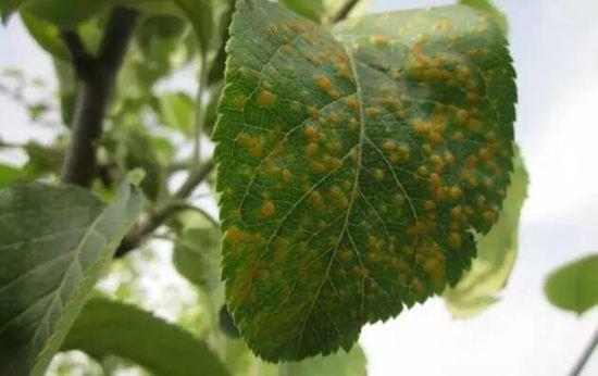 苹果锈病病菌,必须在转主寄主如桧柏、塔柏、圆柏、龙柏、刺柏等树上过冬,才能完成侵染循环,若苹果,海棠园或苗园地附近没有这些寄主,则不会发生此病。越冬转主寄主的存在数量较多的越冬病菌,次年发病就会较为严重。4~5月,展叶开花后,若遇阴雨连绵,降水量达到50mm 以上,则有利于病菌传播和侵染。