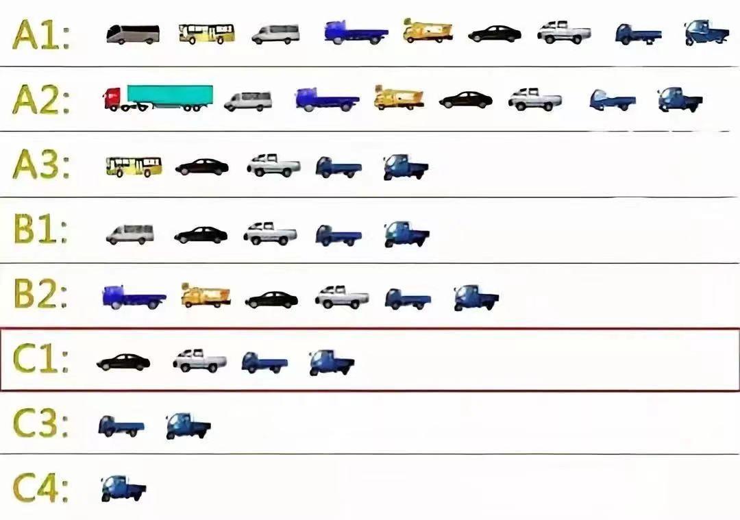 持有C1可以驾驶六种车型:小型自动和手动挡汽车、小型货车和皮卡车、小型三轮和面包车。