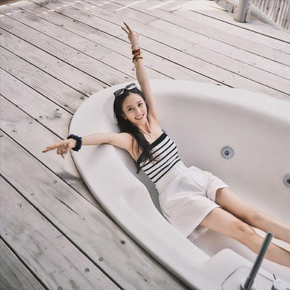 佟丽娅慵懒假日写真大片,40岁魅力不减,抹胸上衣展现迷人锁骨
