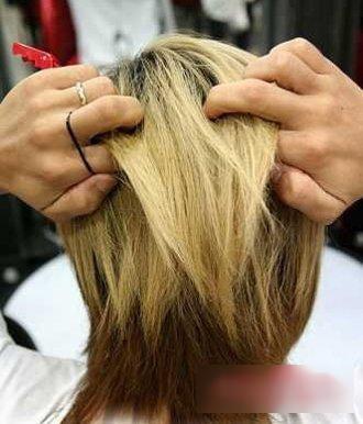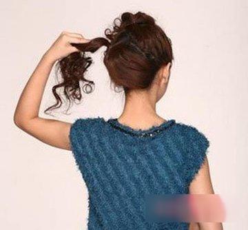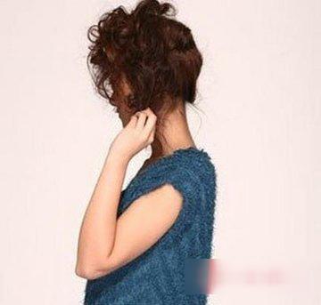 第三步:将汇合后的发丝使用发夹做固定,将下层的发丝向上做蓬松的处理,发丝凌乱却有着独特的美感。