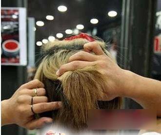 第三步:使用发夹将上层的发丝固定住,从发丝的下层再分离出一束发丝,记得不用太多,但是也不要过少。