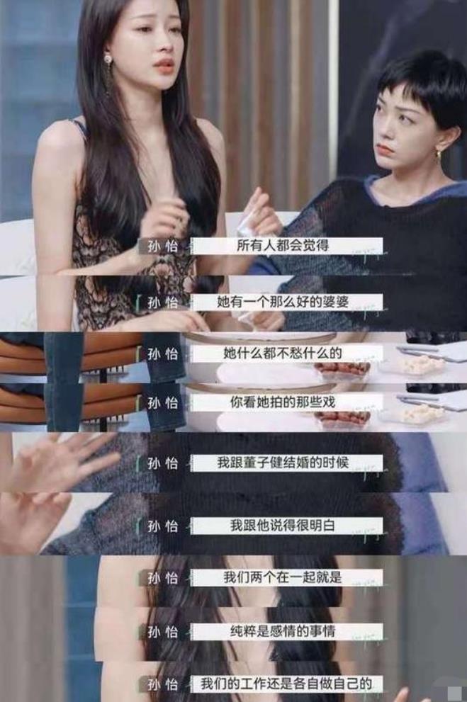 早在此前的几次采访中,孙怡就说到自己决定嫁给董子健绝不是因为董子健显赫的家世,也并非因为婆婆是著名的经纪人。