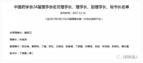 根据2017年12月22日,中国药学会发布的24届理事会名誉理事长、理事长、副理事长、秘书长名单显示,孙咸泽已经当选中国药学会新一届的理事长。