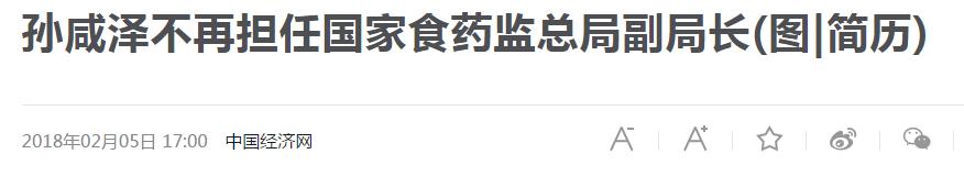 据21早新闻搜索,这是真的。但据中国经济网报道,自2018年2月5日,孙咸泽被免去国家食品药品监督管理总局副局长职务。