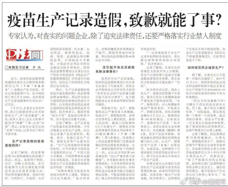 检察日报:疫苗生产记录造假,致歉就能了事?