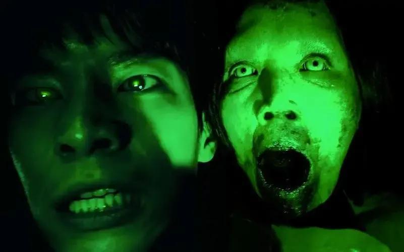 觉得不太对劲,成勋拿起DV对着角落(夜视功能),发现角落里站着一个人,肉眼看不到,颤抖的手慢慢放下,旋即,他再次举起DV,发现墙角那人转过身来了,再次颤抖放下。最后被鬼杀了!就剩队长一人穿上装备前往精神病院看到窗户有一个人(其实是他自己被鬼杀了站在窗户边)进入402房间!看向窗外竟然发现自己当时在下面看窗户的样子!