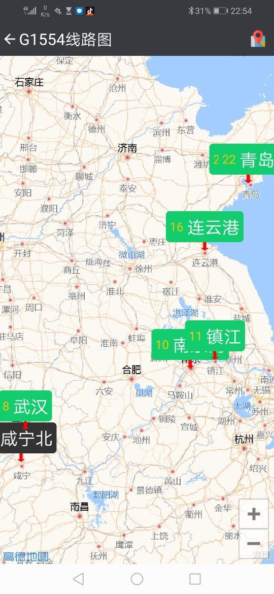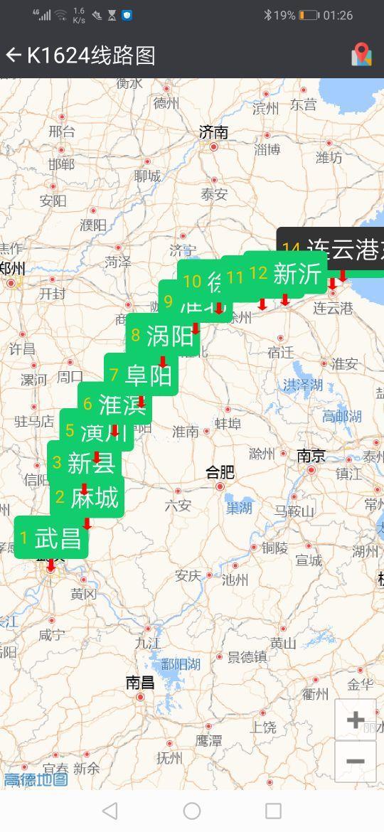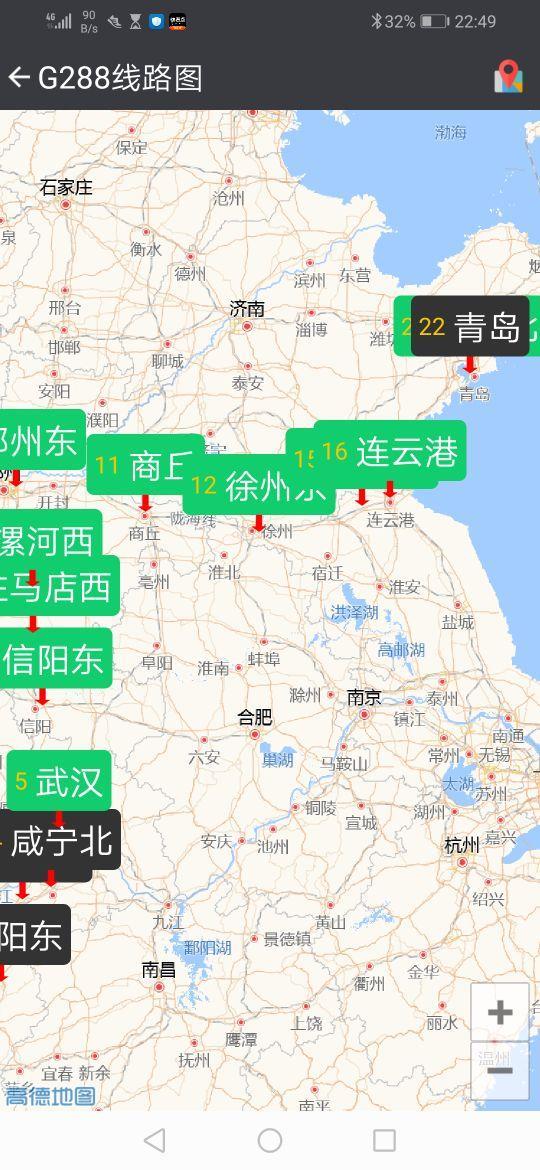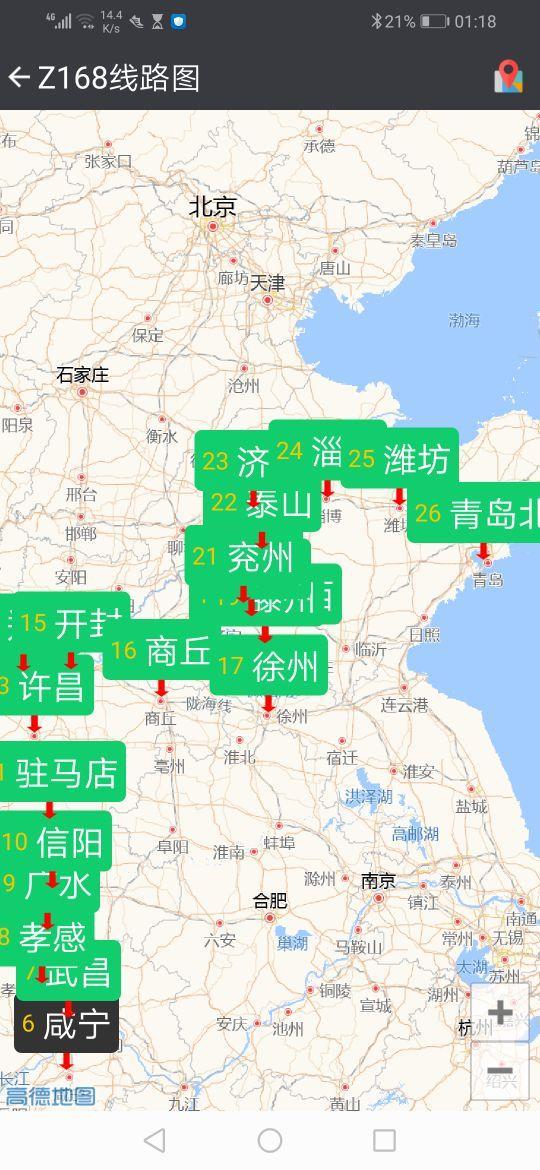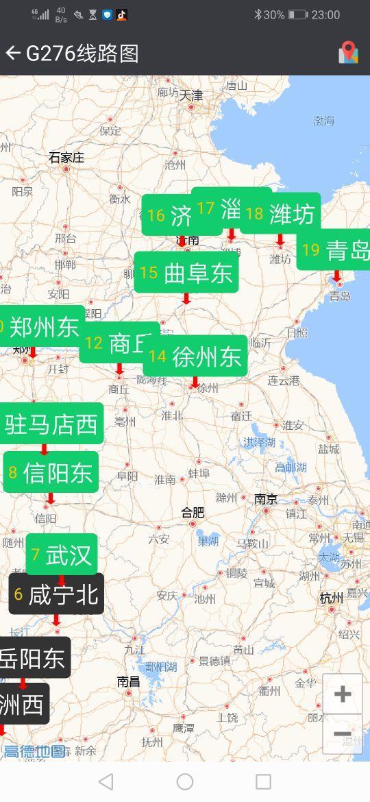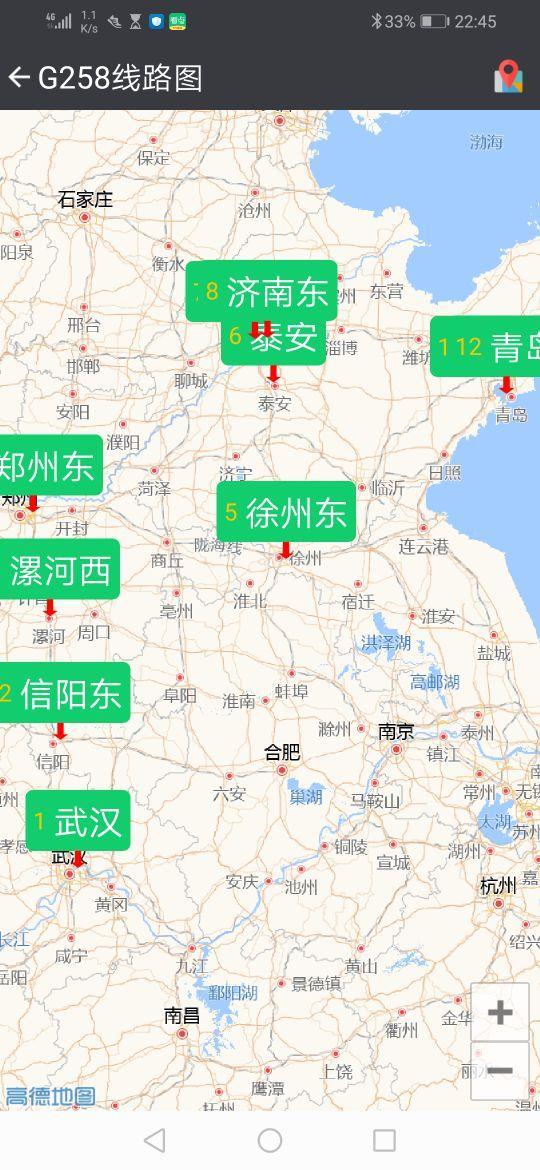 走京广高铁到郑州,再走陇海高铁到徐州,接着走京沪高铁到济南,最后走济青高铁到青岛。这次列车好在全线走350的线路,比较快。