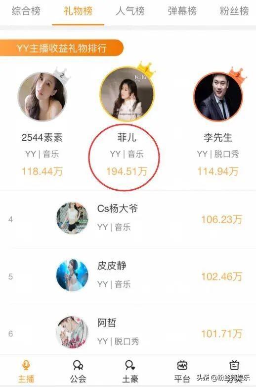 YY新任“一姐”上任,菲儿榜单直逼200万,各项数据临近文儿
