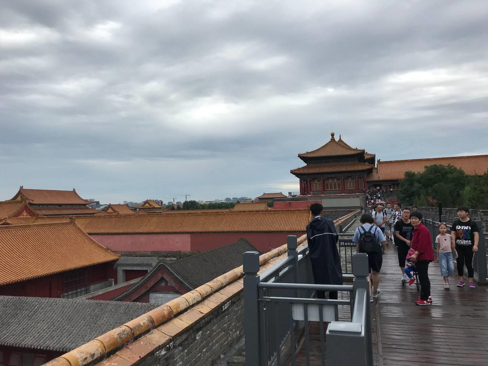 午门是进入故宫的第一个景点,也是故宫最大的展厅,每年都会在这里举办很多场特展,从西边的楼梯上到城墙上面。
