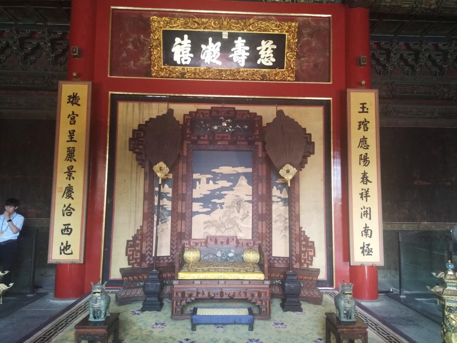宁寿门是宁寿宫区的第二道宫门,穿过后即皇极殿,皇极殿曾经是乾隆皇帝归政后临朝受贺的地方,殿内布置十分考究,品级仅次于太和殿。
