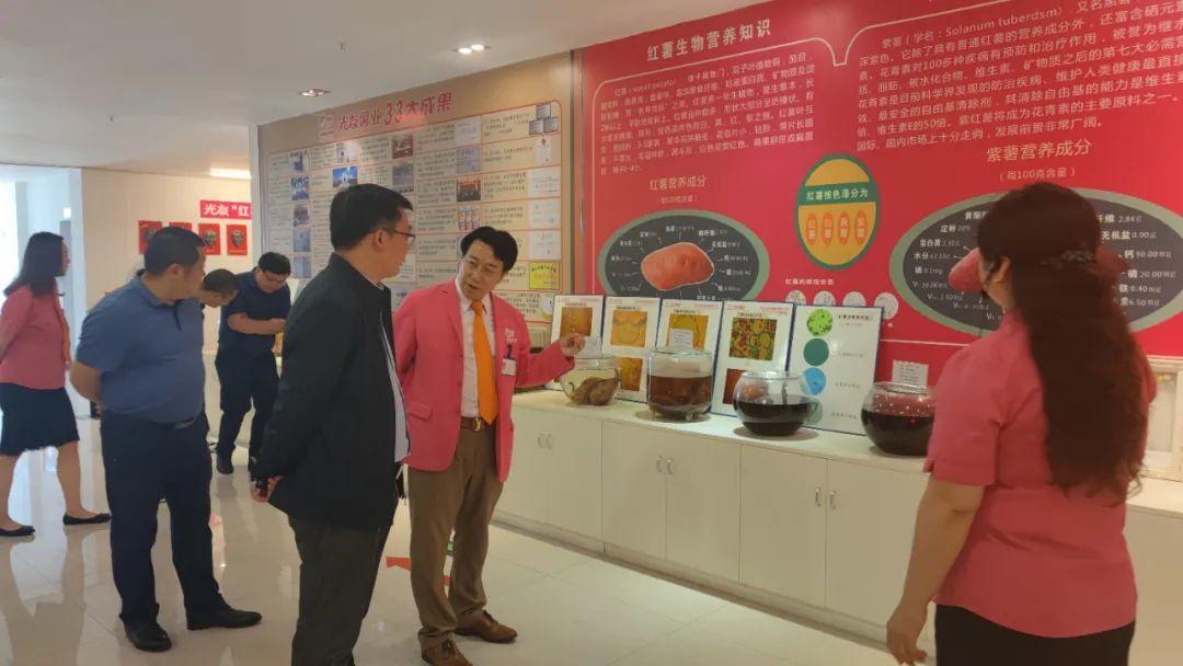 穿越五彩缤纷的“粉丝隧道”,来到光友红薯历史园,校领导们仿佛穿越8000年,共走神秘的“红薯之路”。在这里,校领导们不但学习了红薯营养保健知识,还看到光友薯业连续九届,被国家八部委评定为“农业产业化国家重点龙头企业”,获得“国家高新技术企业”、“全国主食加工业示范企业”、“全国马铃薯主食化产业十大领军企业”,以及百余项国际国内金奖、省级以上科技进步或技术创新奖等殊荣。光友创业创新路上获得的辉煌成绩,让现场所有人惊叹不已。