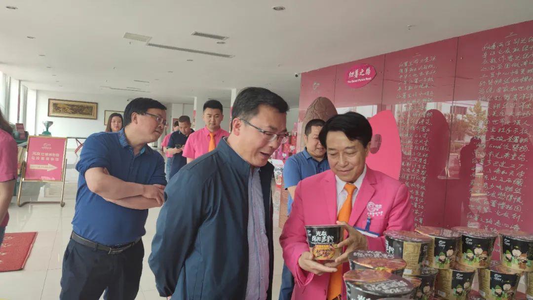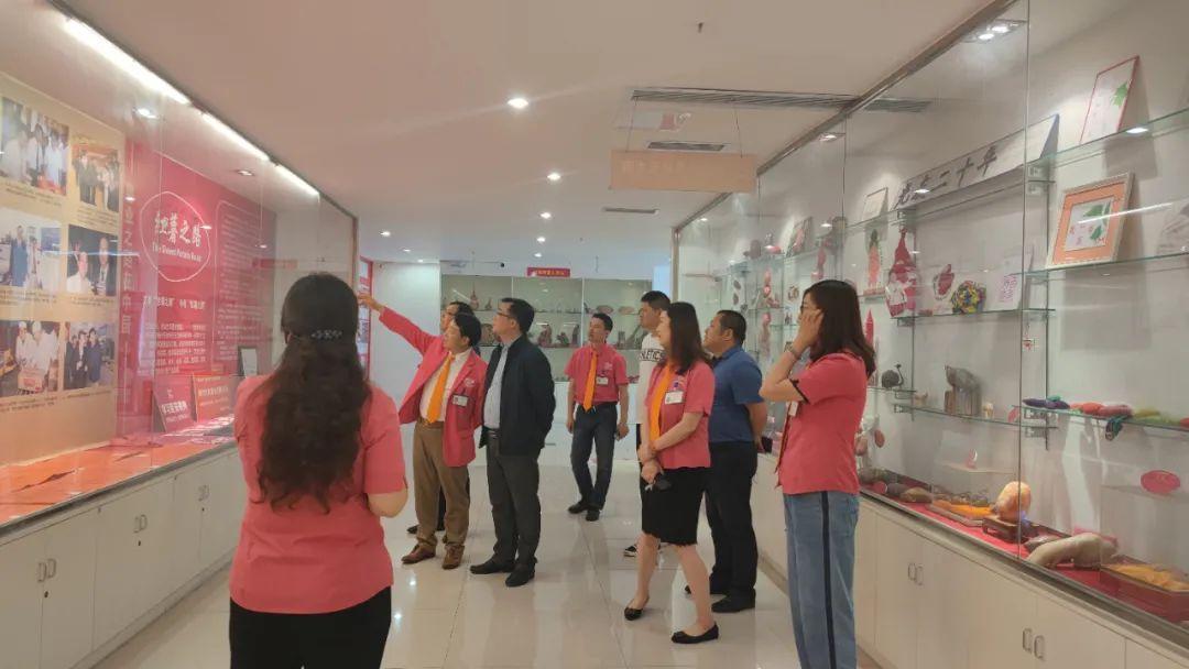 二楼红薯文化艺术园,是琳琅满目来自古今中外与红薯及加工产品相关的工艺品、书画作品,校领导们不时驻足,一边仔细欣赏,一边和邹光友董事长交流。邹光友董事长向校领导分享自己1992年创业的经历,以及光友薯业掀起六次粉丝革命的辉煌成绩,校领导们内心无比震撼,纷纷为光友点赞。