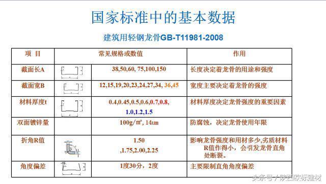 国家标准就是针对以上数据规定的允许偏差范围。只有保证了龙骨的规格尺寸及厚度指标,才能保证龙骨力学指标满足国标要求。 (除上表以外,还有长度偏差、平直度偏差等与龙骨力学指标关系不大的数据。)
