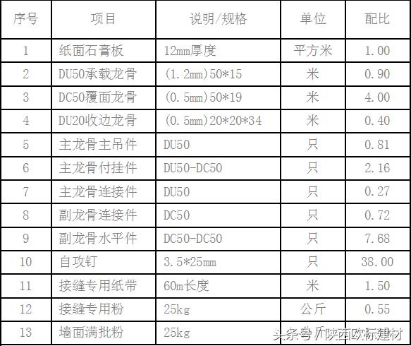 ▲传统吊顶龙骨常用配比