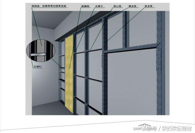 1、50隔墙系统无需加入穿心龙骨。