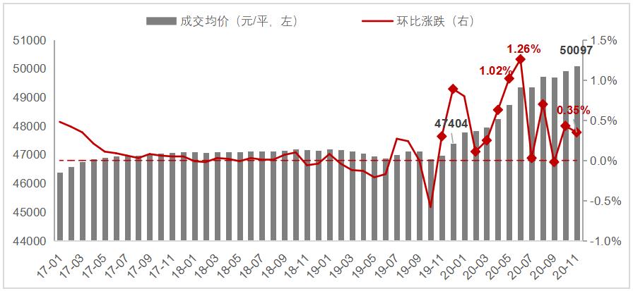 2020年上海房价成交均价突破5万元/平米,北京全市新房均价4.8万元/平米。