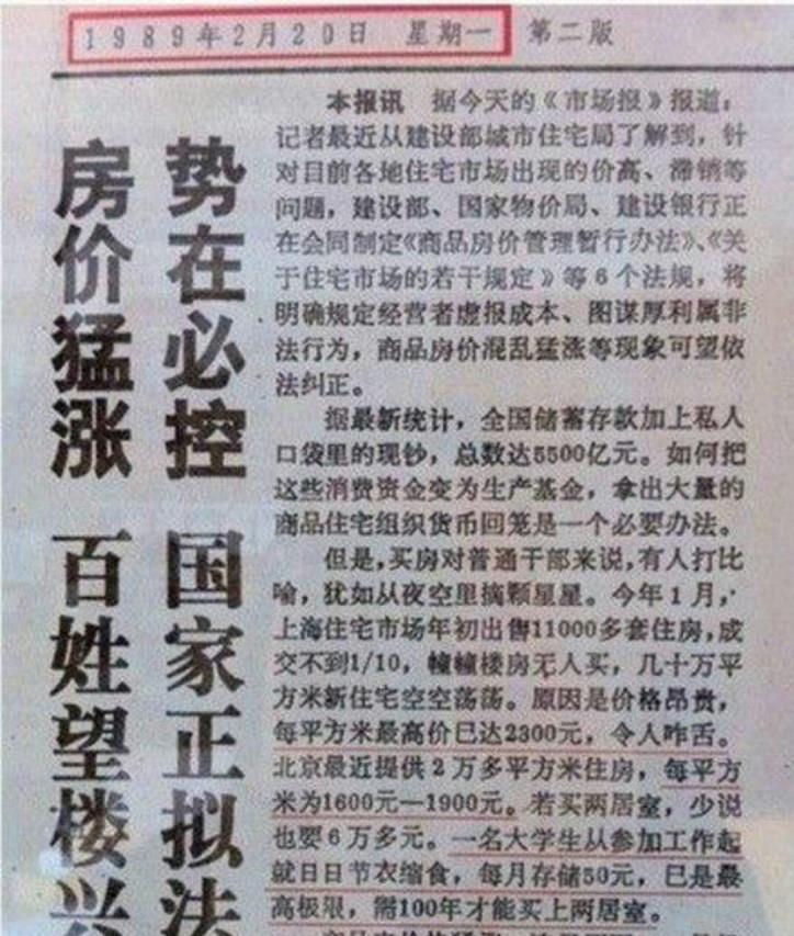 1990年1月上海的新建的商品住房房价2300元/平米,北京的商品住房房价是1600元~1900元/平米。