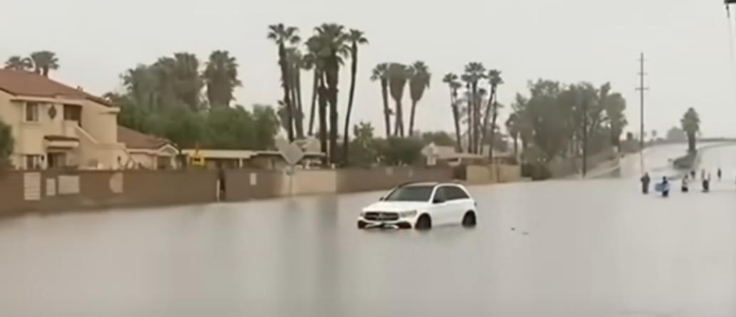 消息一:美国加州台风地震!数万人面临洪水,富人区被淹没